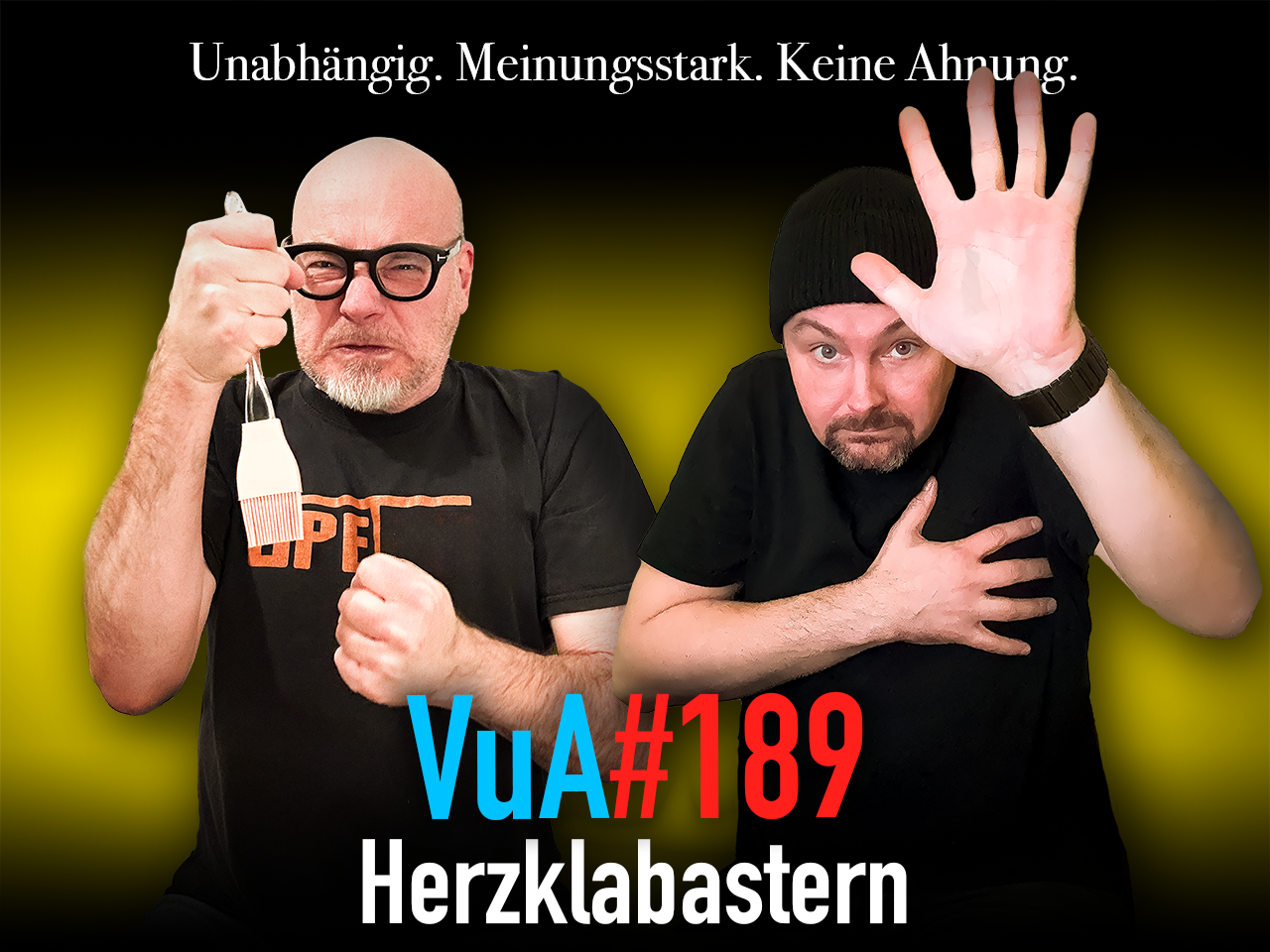 Während sich betrunkene Konsumnasen über die Weihnachtsmärkte schieben und die Paketboten die eine oder andere Überstunde machen müssen, geht es bei der 189. Folge von „Verkocht und Abgedreht“ absolut besinnlich zu: Koch und Fernsehmann werfen sich die wöchentlichen Rubriken so zu als wären es Wattebäuschchen, alles ist beschaulich, alles ist gemütlich, bis Recky von seiner neuen Lieblingsserie erzählt und Daniel damit regelrecht zu einem 180er-Puls verhilft. Kann Fernsehen da noch gesund sein? Spätestens als die beiden sich entscheiden, die „5 Speedfragen“ diesmal ausführlich und nicht in der „Ja/Nein“-Antwort-Edition zu spielen, kocht die Stimmung wieder runter und ein Notarztanruf kann in letzter Sekunde abgewendet werden. Und so gibt’s dann softe, weihnachtsvorfreudige, gute Musik, jede Menge Tipps, wie man verhindern kann, sein Haus abzufackeln, dazu wirklich unnützes Wissen und die brandneue Rubrik der „Boomerfloskeln“. Zu guter Letzt erzählt der Eifeler Kochbarde von seinem neuen Bekannten, der sich bei ihm per Chiffrenummer auf seine Annonce „Koch, mit Kümmelantipathie sucht…“ im Lokalteil des „Nettersheimer Tageblatt“ gemeldet hat. Punkt, Punkt, Punkte…