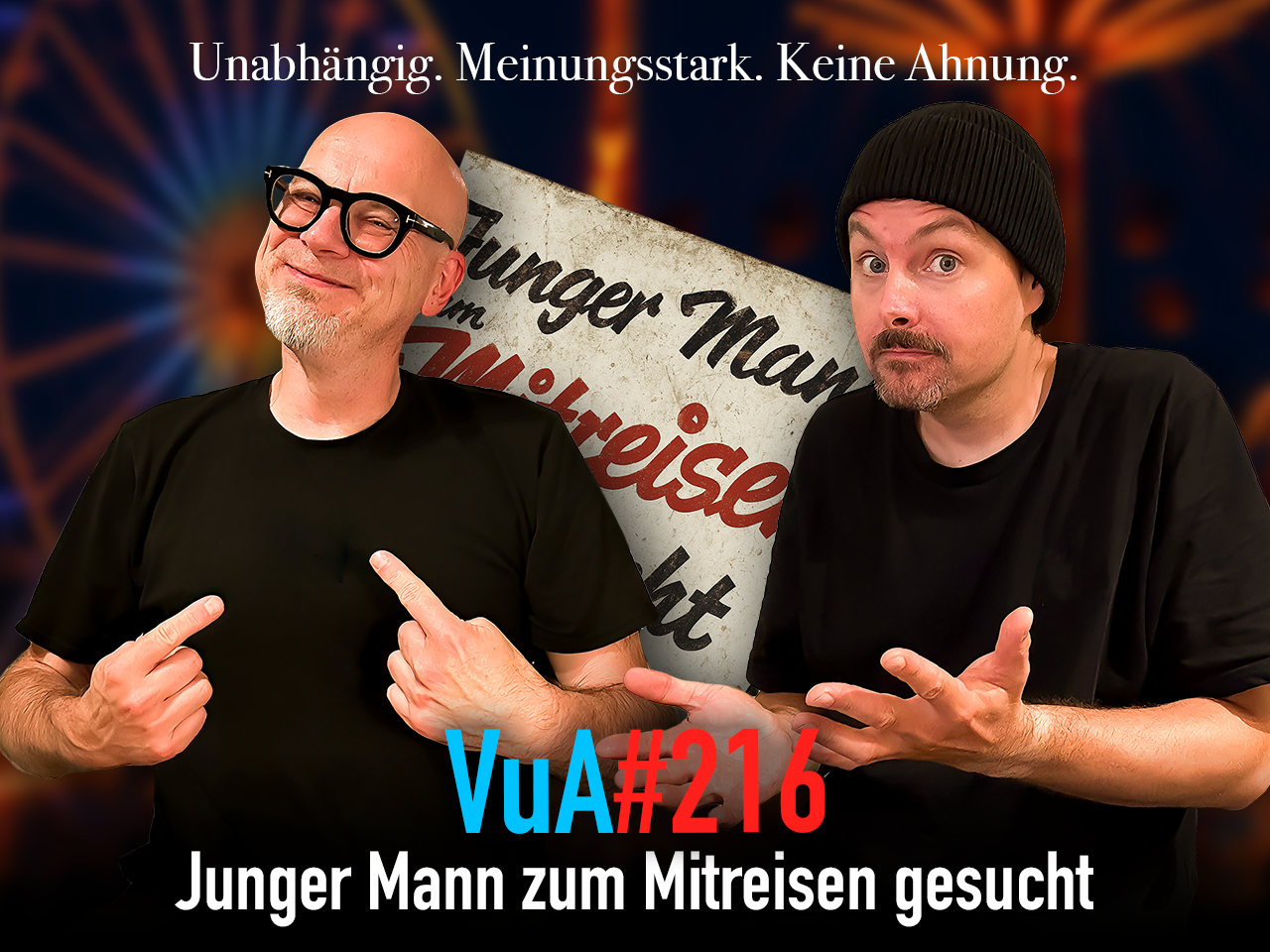 „Verkocht und Abgedreht“ ist wie eine Stellenausschreibung auf einem Jahrmarkt: Jeder darf mitmachen, aber es macht Spaß und die Bezahlung ist schlecht! Um sein Gegenüber zu provozieren, zeigt der Koch mehr oder weniger auffällig oft sein neues Hintergrundbild am Handy, wo er sich selbst in martialischer Haltung in Szene gesetzt und abgelichtet hat. Daniel reagiert mit einem müden Zurechtzuppeln seines Hermelinkraken am T-Shirt, stellt seinen Wecker forsch auf 23:33 Uhr und bereitet sich auf die schnellsten „5 Speedfragen“ in der Geschichte der Menschheit innerhalb dieses Podcasts vor. Leider weiß man an dieser Stelle noch nicht, ob die 216. Folge in diesem Moment durch eine säubernde KI einfach abgeschnitten wurde, da Recky und der Fernsehmann erfolglos versuchen, sich politisch möglichst korrekt auszudrücken, während sie darüber philosophieren, wie anstößig und gesellschaftsfremd so viele Sprachgebräuche geworden sind. Schwierig, man muss dabei gewesen sein. Und wer sich dran erinnert, hat die guten alten Zeiten nicht erlebt…