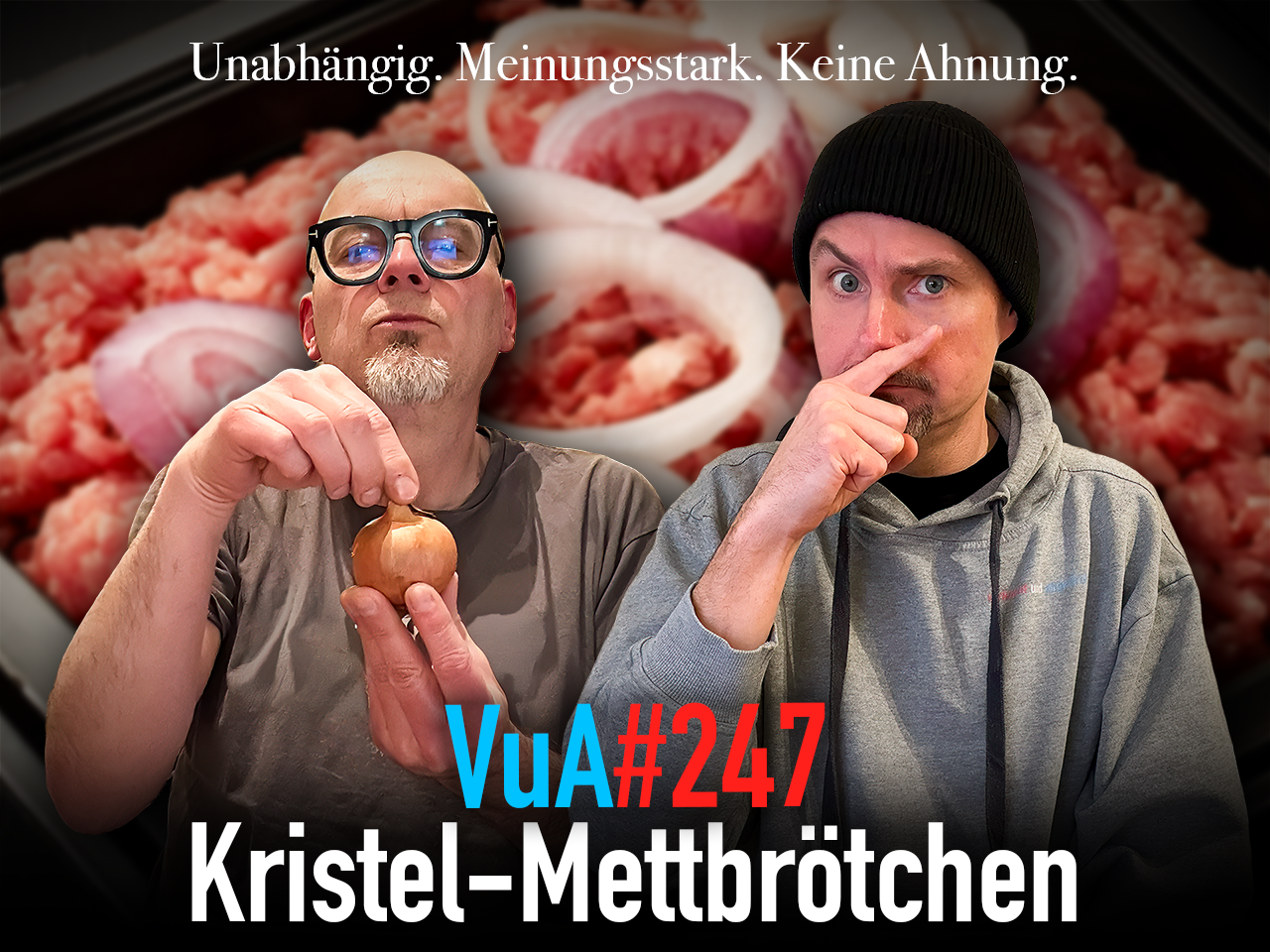In welchem Fachmagazin kann man sich eigentlich darüber informieren, wie illegale Substanzen fachgerecht zu sich genommen werden? Oder gibt es da eventuell sogar kostenlose Seminarangebote an der hiesigen Volkshochschule? Das ist nur eine von sehr vielen Fragen, die bei „Verkocht und Abgedreht“ (heute in der akademischen Ausgabe für Chemie, Historie und autogenen Politikwissenschaften) bis zum jeweiligen Höchstgrad des Erklärbaren aufgedröselt werden. Koch und Fernsehmann haben aber natürlich auch leichte Kost (in einfacher Sprache) mitgebracht: Wie weit reicht das WLAN-Signal von Reckys Waschmaschine? Ab welchem Alter lädt die Hintergrundmusik im Supermarkt zum Verweilen ein? Wieso hat Daniel einen Globus und eine Schraubzwinge mitgebracht? Einige „Super-Tipps“-, „tolle Musik“- und „Unnützes Wissen“-Rubriken später sind die Hausaufgabenhefte vollgeschrieben, wir sind alle schlauer und verströmen einen herrlichen Zwiebelatem in die schöne Podcastluft…