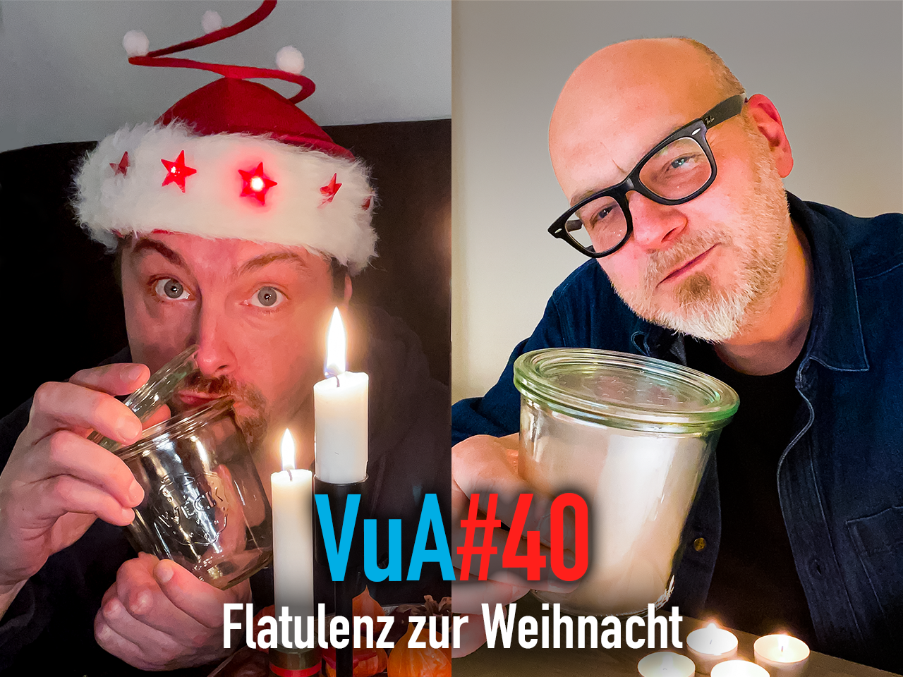 Lasst uns die wenigen Tage nutzen, die uns die Ministerrunde noch gibt, Virusvarianten auf Weihnachtsmärkten und größeren geselligen Zusammenkünften zu streuen. Anfang des Jahres können wir uns dann ja einfach krank melden. Mit dieser besinnlichen Ruhe feiert „Verkocht & Abgedreht“ heute sein 40. Folgenjubiläum und genießt die merkbar länger werdenden Tage nach der Wintersonnenwende. Daniel versucht den Koch von einer neuen Geschäftsidee zu überzeugen, bei der die beiden künftig als Furz-Influenzer (oder sind es dann Inflatulenzer?) ´ne schnelle Mark machen könnten. Von der Idee schnell überzeugt, überdenkt Recky dann das Relativpreis-Theorem und kommt zu dem genialen Ergebnis, dass wir relativ schon im Relativ-Konstrukt leben. Ist halt alles irgendwie relativ. Im Anschluss berichtet der Fernsehmann noch ein wenig aus der relativ unwirklichen Welt der Weihnacht im Spätsommer, in die er sich gelegentlich begibt. Nun aber ran an Gans, Rotkohl und Klöße! Und wenn Vatti an Heiligabend wieder einen im Tee hat, gibt es noch viele Folgen VuA nachzuhören!